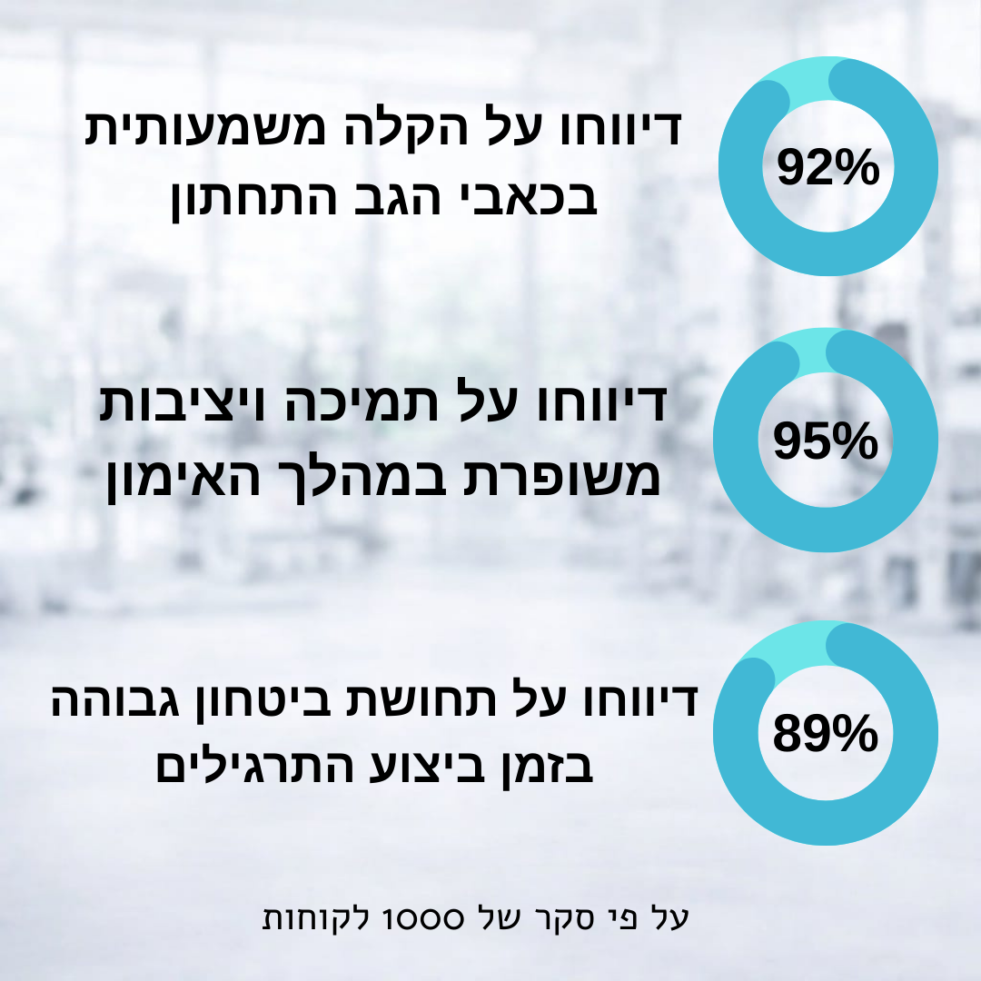 השלכות הכאב הן משמעותיות: הוא מגביל את החופש בתנועה, גורם לוותר על תרגילים חשובים ופוגע באימון עצמו ובהתקדמות. כשהבעיה נמשכת, הסיכון לפציעות גדל, ופעמים רבות הכאב הופך למטרד גם במהלך היומיום😣
