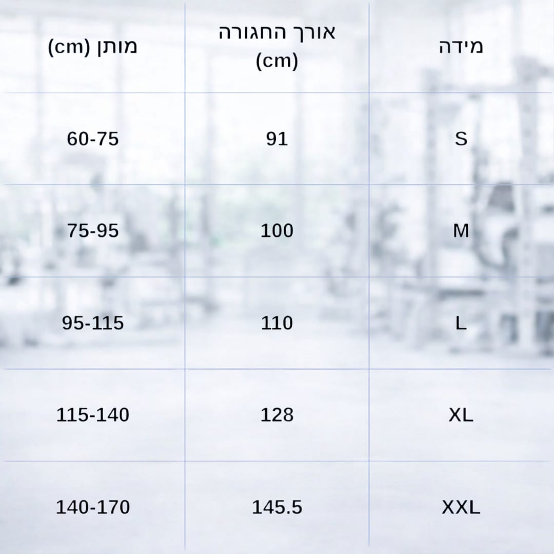 החגורה מספקת תמיכה בזמן אימון, מפחיתה עומס על הגב התחתון ומונעת כאבים לפני שהם מתחילים.